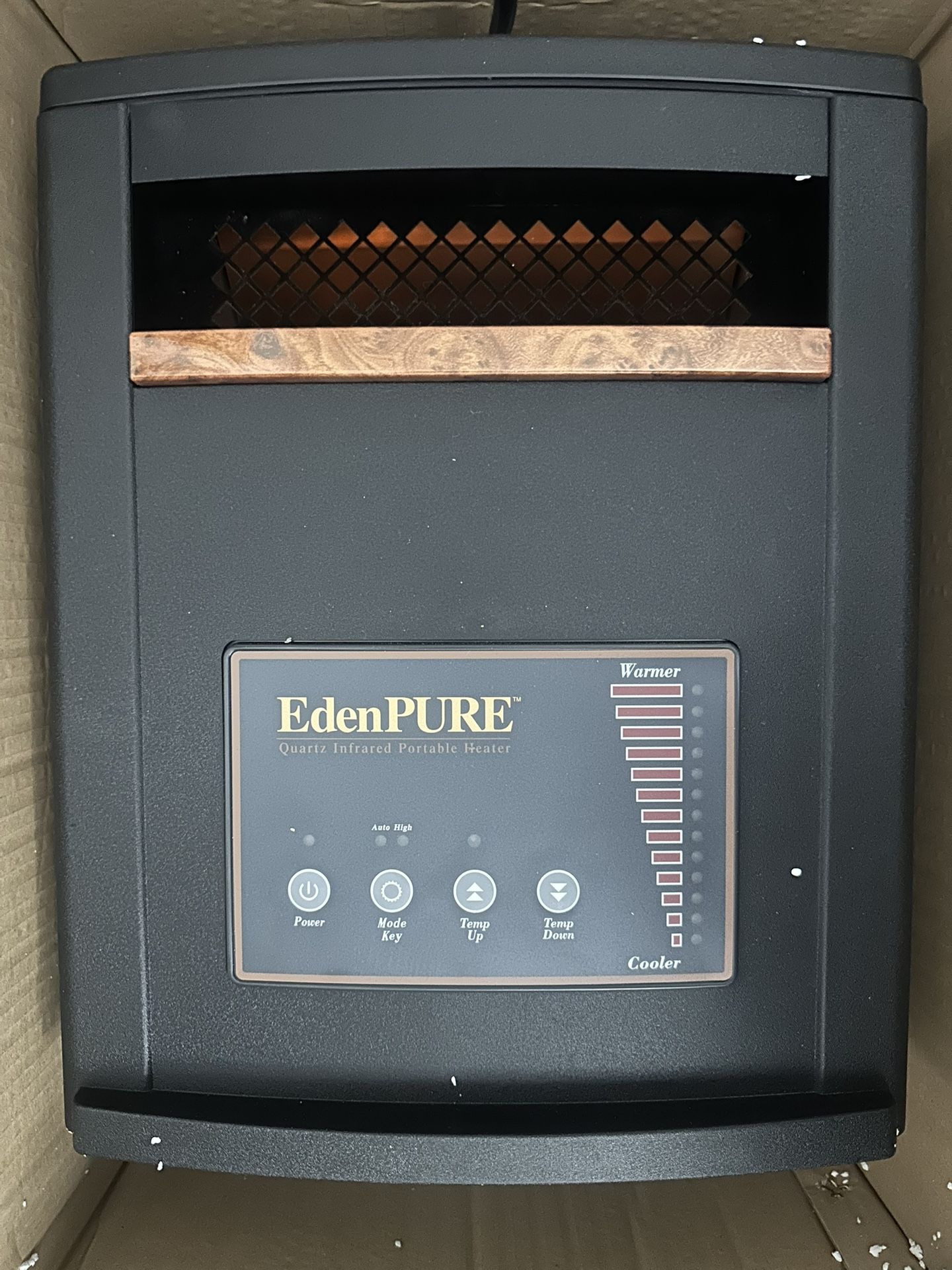 Pick up near Buffalo and Cheyenne *No remote* Elevate your indoor comfort with this luxury-grade EdenPURE Gen3 Infrared Heater — trusted for efficient, safe, and even heat distribution. Ideal for cozying up any space up to 1,000 sq ft without drying the air or increasing your energy bill. ✨ Features & Benefits: • 🌡️ Energy Efficient: Save up to 50% on your energy bills • 📏 Heats up to 1,000 sq. ft with infrared technology • 🌀 UVC air purifying system built-in • 🔒 Safe for kids & pets: Cool-touch exterior • 🧼 Washable lifetime filter • 🔧 Smart stone CICC heating plate system • 🔁 Enhanced digital range thermostat • 🛞 Caster wheels for easy mobility • 🛡️ 3-Year Manufacturer’s Warranty • ✅ UL Listed 📦 Includes: • (1) EdenPURE Heater