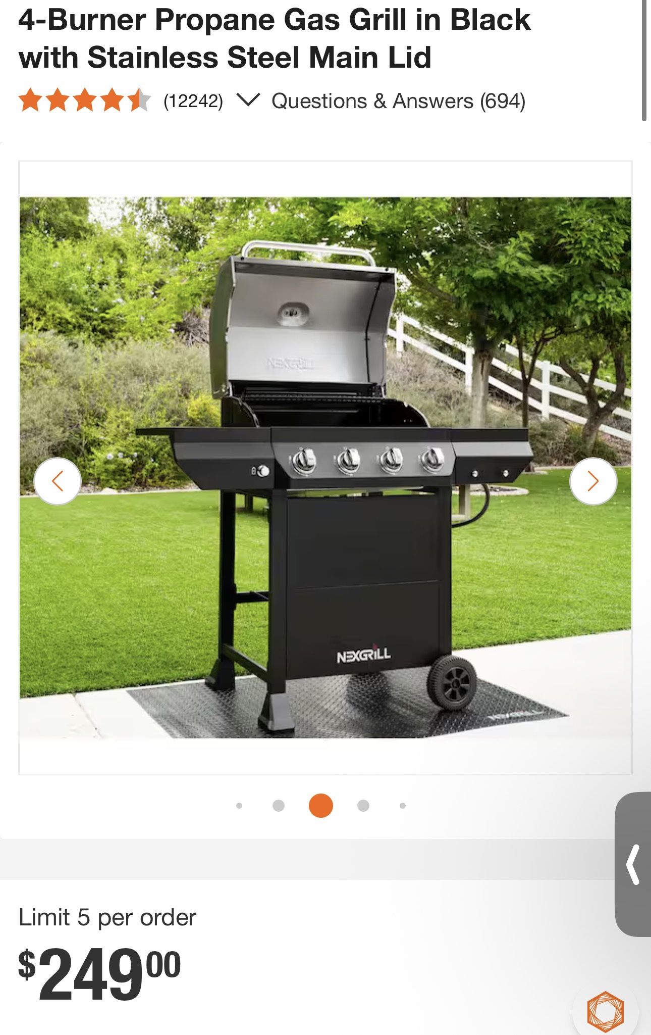 Nexgrill 4-Burner Propane Gas Grill in Black with Stainless Steel Main Lid New, just a bit dusty from being outside. Propane tank $50 additional