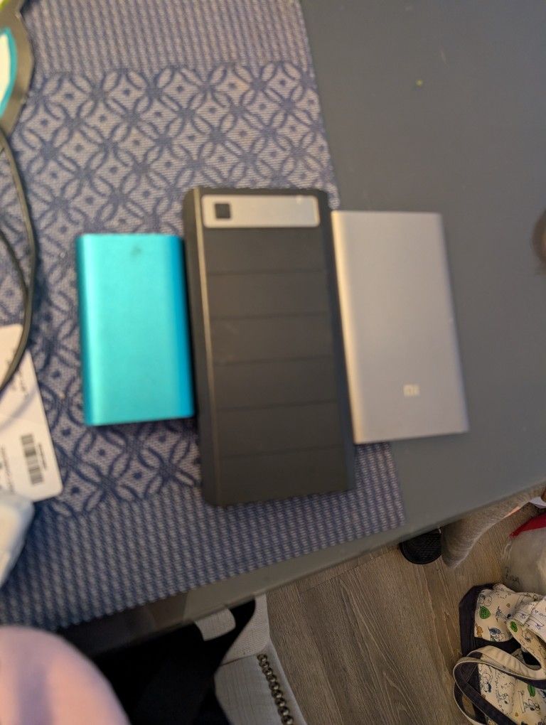 3 banks different sizes.. sold as is.. all hold a charge but are used. Let me know which bank you want. The black and silver Banks have usb c connections Deal for buying all 3.