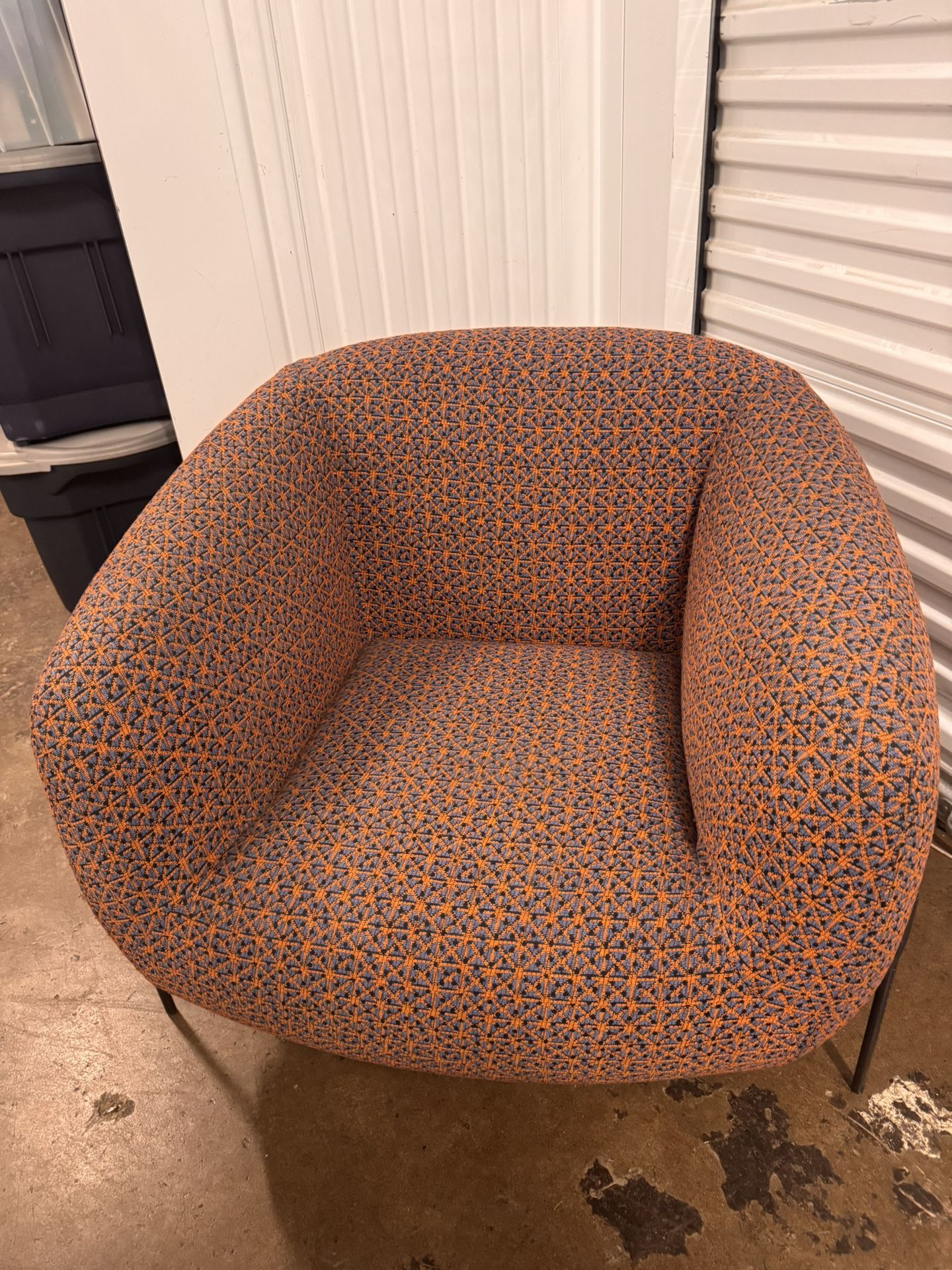 Perfect accent chair for living room, office or bedroom. Extremely comfortable and in good condition. Dimensions: 30” h x 34” w x 23” d ; 14.5” floor to seat