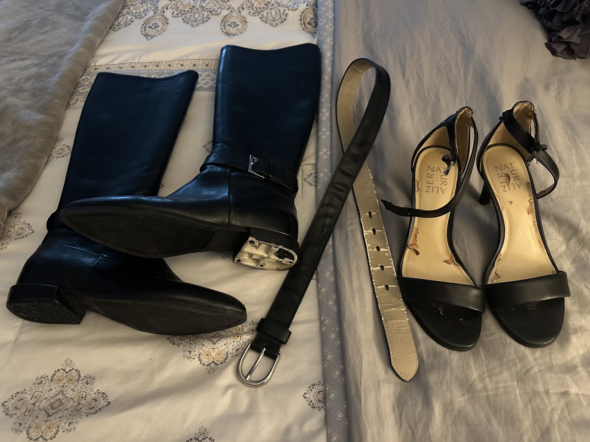 Naturalizer 6 Heels, Nine West 6.5 Boots, & Belt