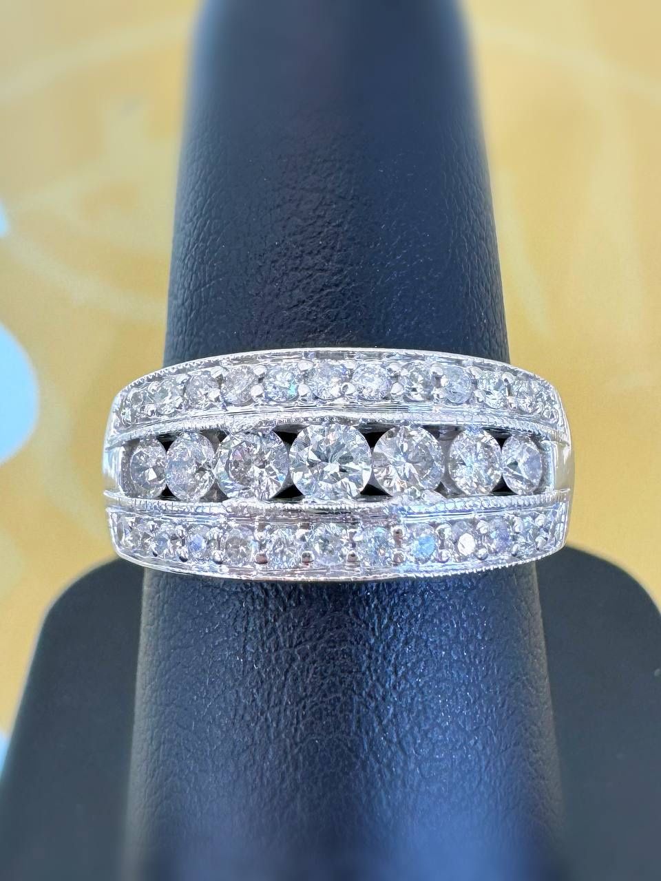 10k solid White Gold 1.5CTW Natural Diamond Anniversary Pave ring sz 7