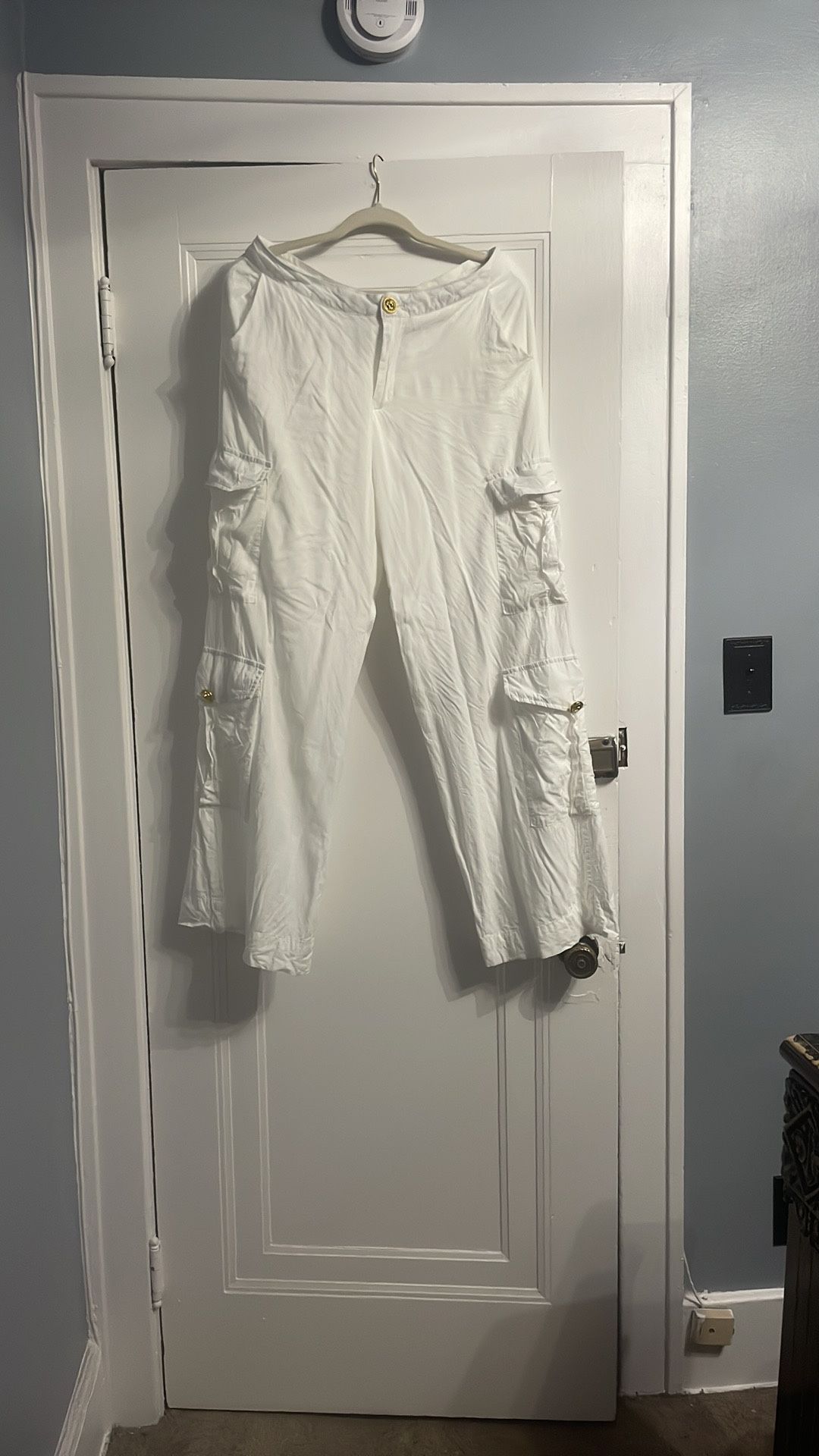 Elevate your wardrobe with these chic white cargo pants. Perfect for a casual yet trendy look. Size Large.