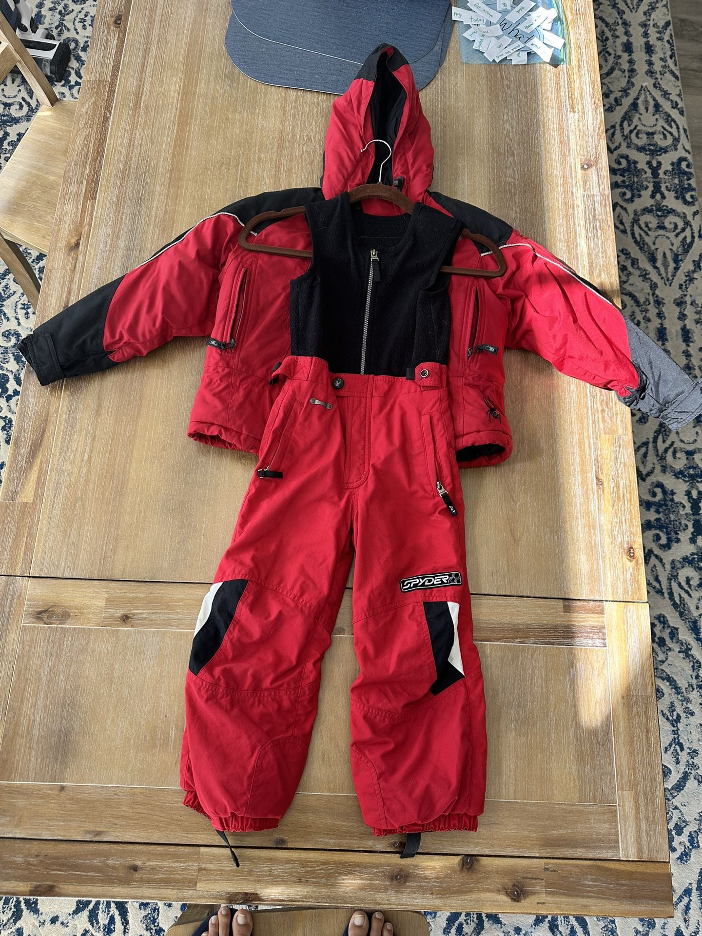 Used Spyder Unisex Kids Ski Jacket and Pants. US size 6 bottoms and jacket. Very warm and my son outgrew it. Cash only and pick up in Wellington FL.