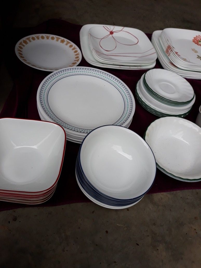 Assorted Corelle plates and bowls 80 pieces dollar each your best offer meet me in Sandy Oregon at Sandy Safeway parking lot morning's preferred