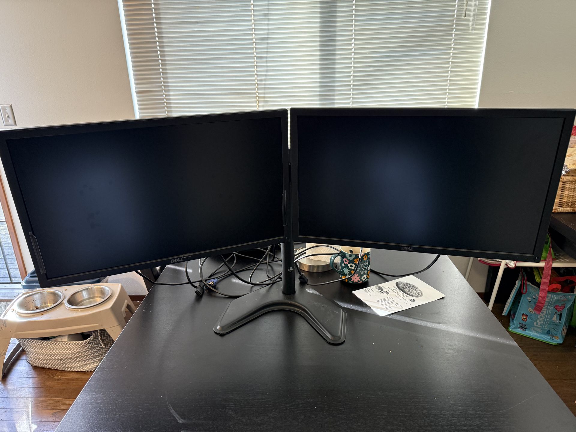 Dual Dell monitors with stand