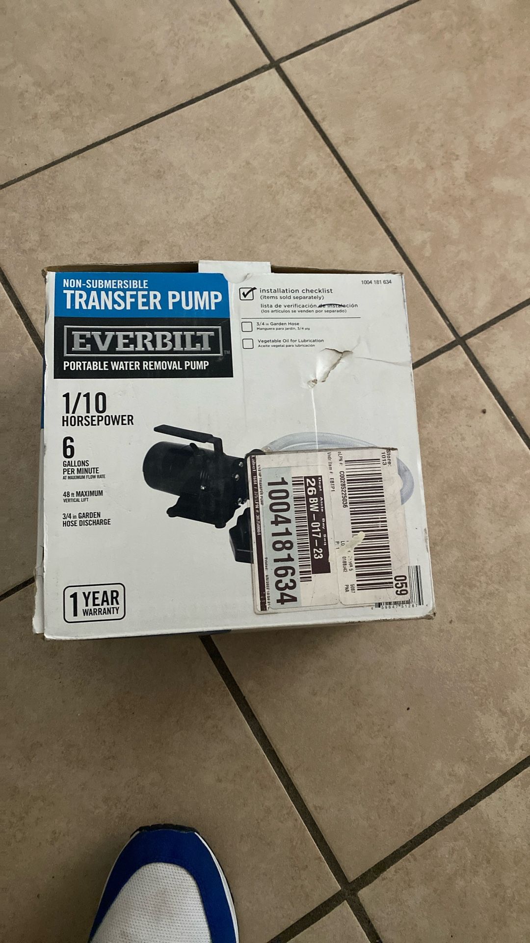 Everbilt 1/10 HP Non Submersible Self Priming Transfer Pump Open box, never used.