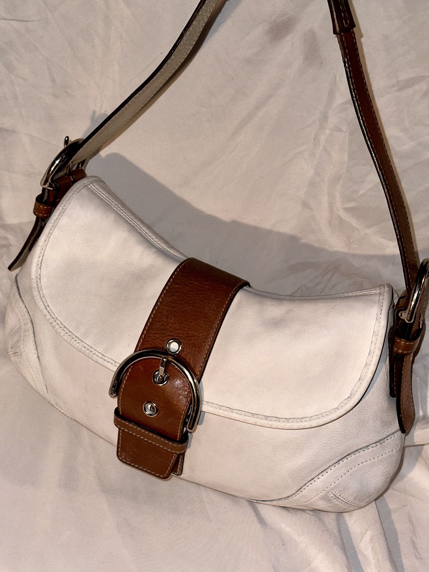 COACH Soho Shoulder Bag CreamBrown Leather Y2K Vintage Purse