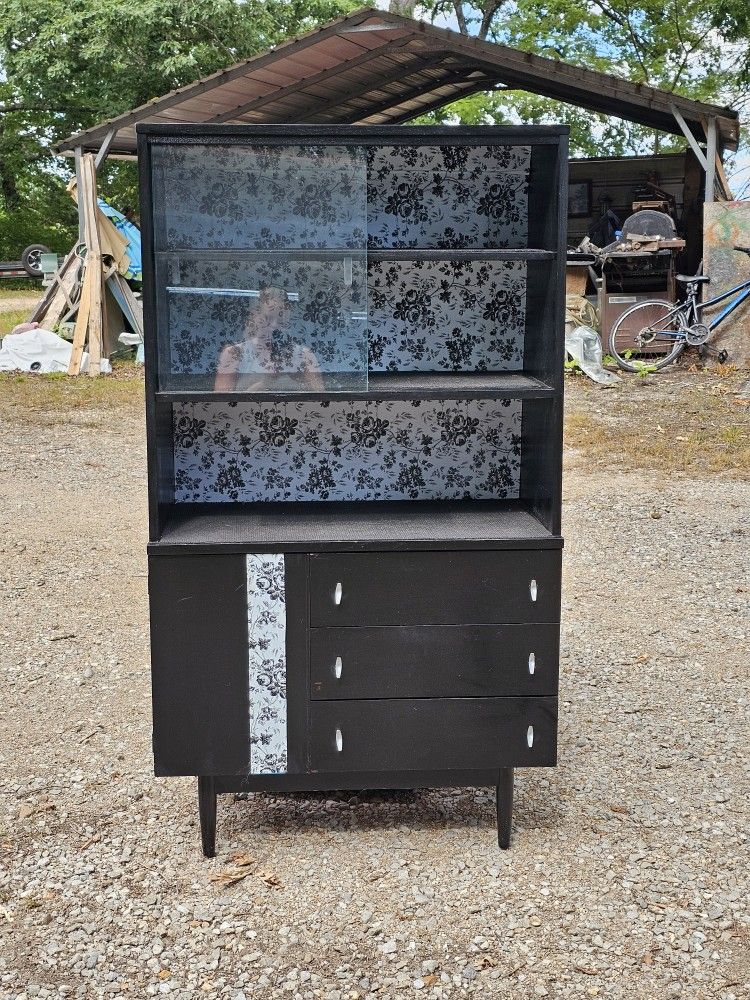Needs cleaned off a little better. Drawers work good. 2 glass doors. They are removable. Door needs a knob. 18 inches deep 3ft 1/8 inch wide 64 1/2 inches tall Located a couple of mins from Lake winnie amusement park Cash or venmo