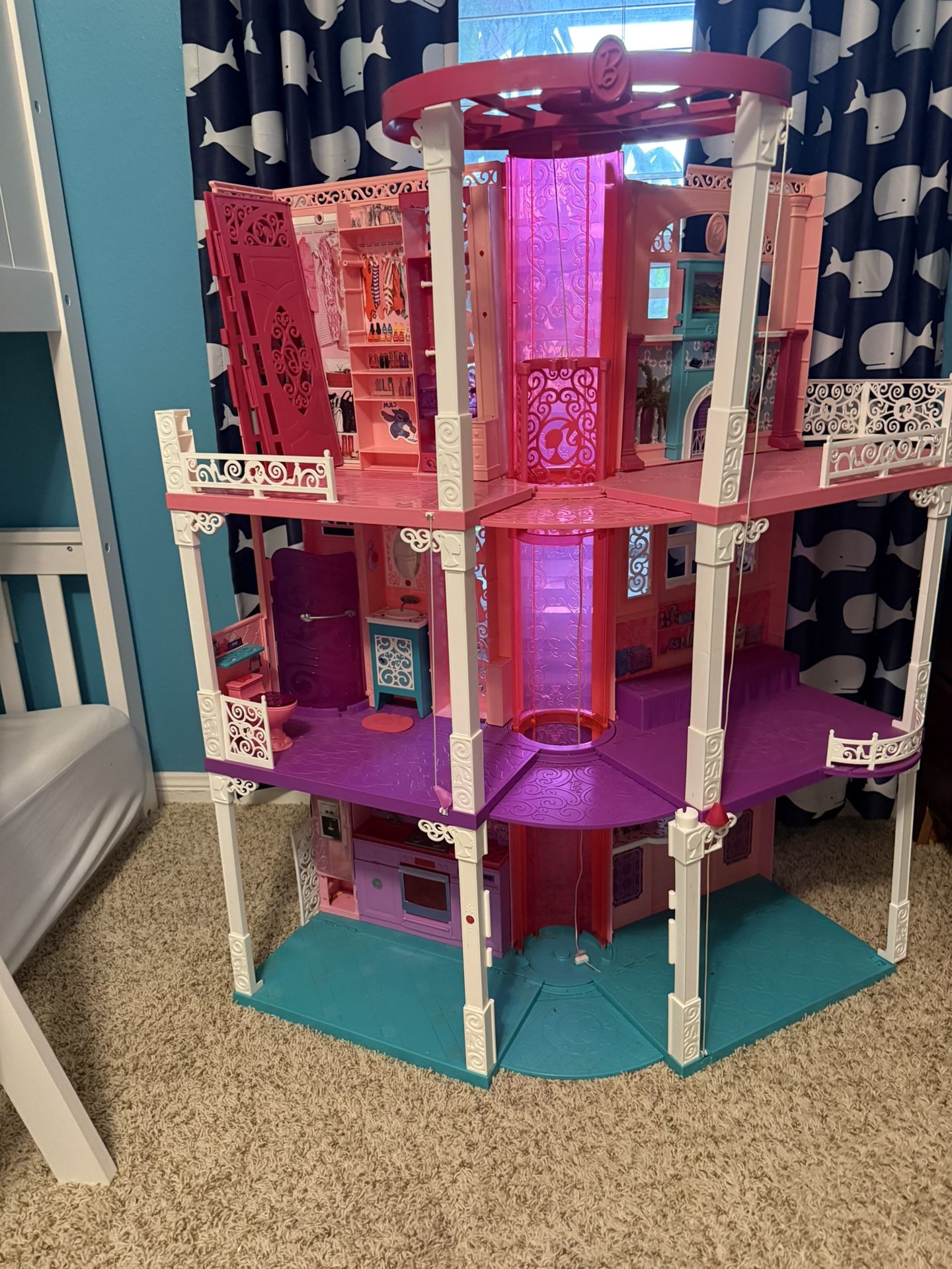 FREE. 3-Story Barbie dollhouse with 2 elevators. Needs to be reassembled with glue to increase stability. FREE at Pearland. Woodcreek subdivision.