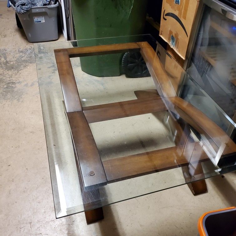 Large Wooden Table With Glass Matching Set Coffee And End Table