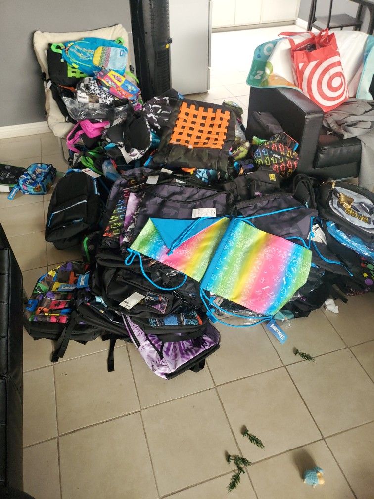 Different styles, colors, and sizes! Backpacks-$10 Crossbody-$8 Fannypacks-$5 Lunchbags-$5 Wallets-$2 Drawstring carry sack-$2