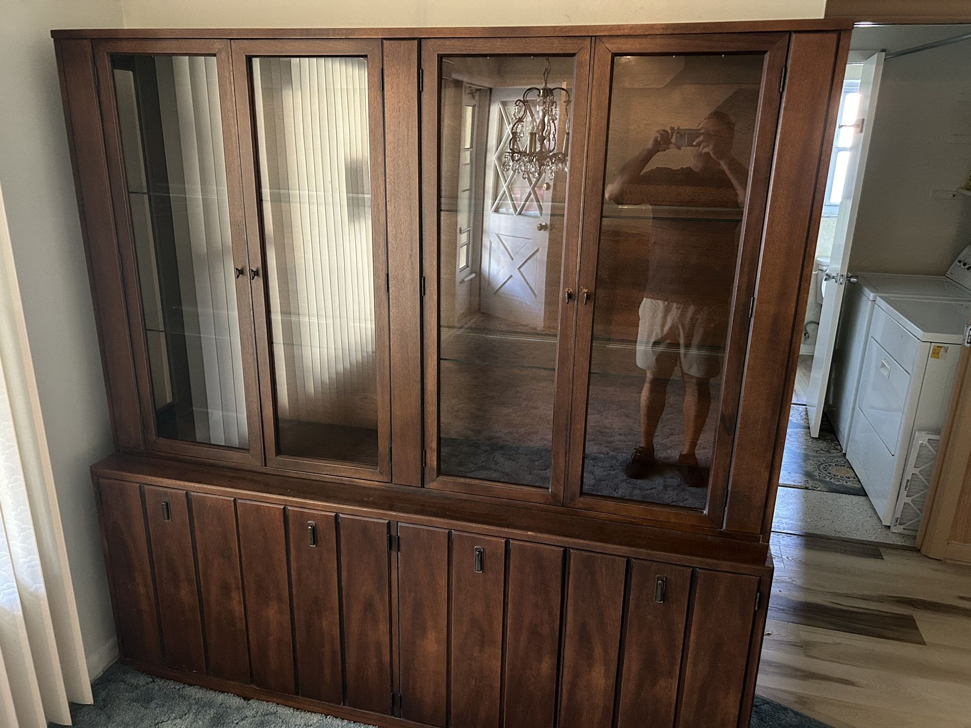 Excellent condition, lights and everything. Won’t last long . two pieces 20 inch depth 6 feet tall 6 ft
