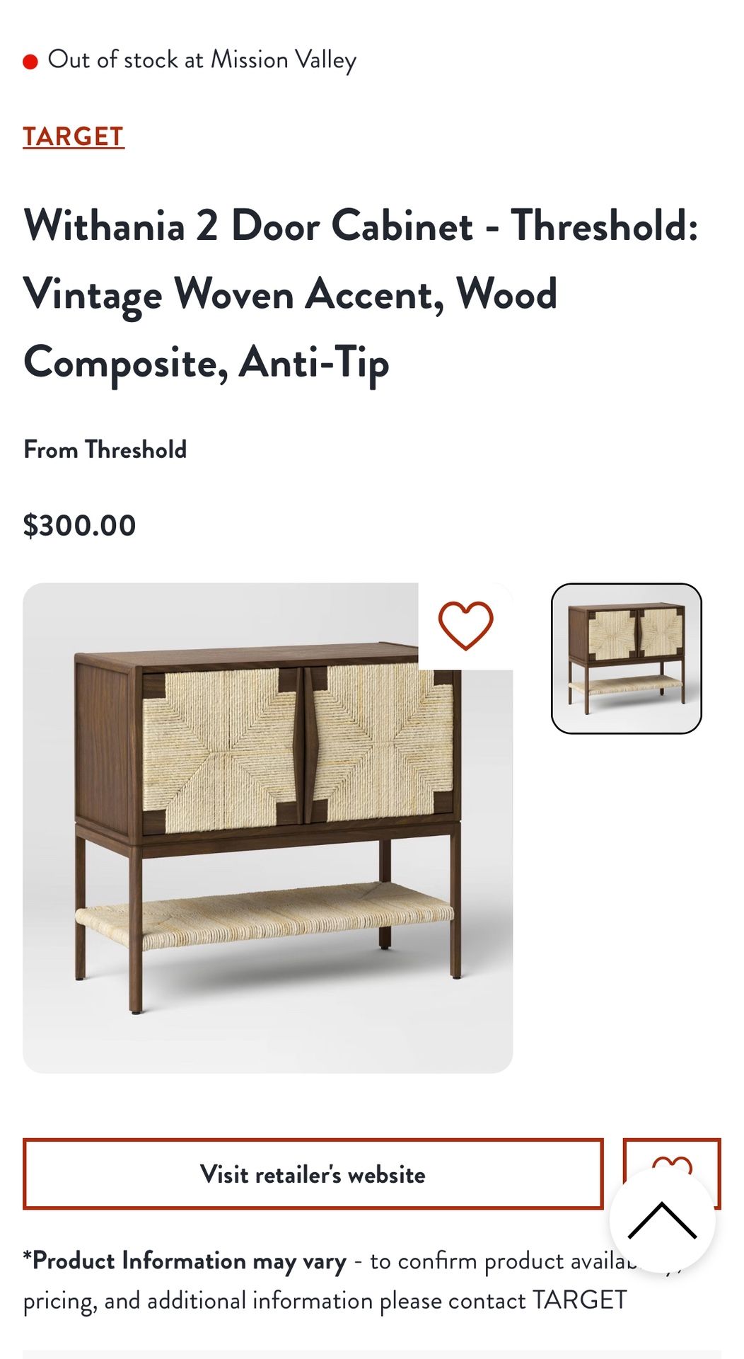 Target threshold wicker brown cabinet. Originally brought it for 300. Asking 200. Brand new in Box