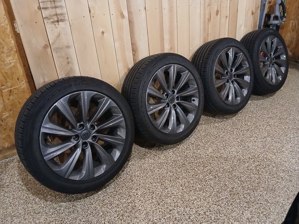 Enhance your ride. Go from the 17" wheels to Brand New 19" Buick Envista factory stock wheels from the Avenir model with sensors that have been powder coated gun metal grey in perfect condition with New Good Year all season tires. Plus a full set of rubber floor mats including the tailgate. Wheels were $1700 from the Dealer. Gun Metal Grey Power coat was $840 at Crown Customs. Tires were $1200 at Discount Tire $3740 = selling for $1800