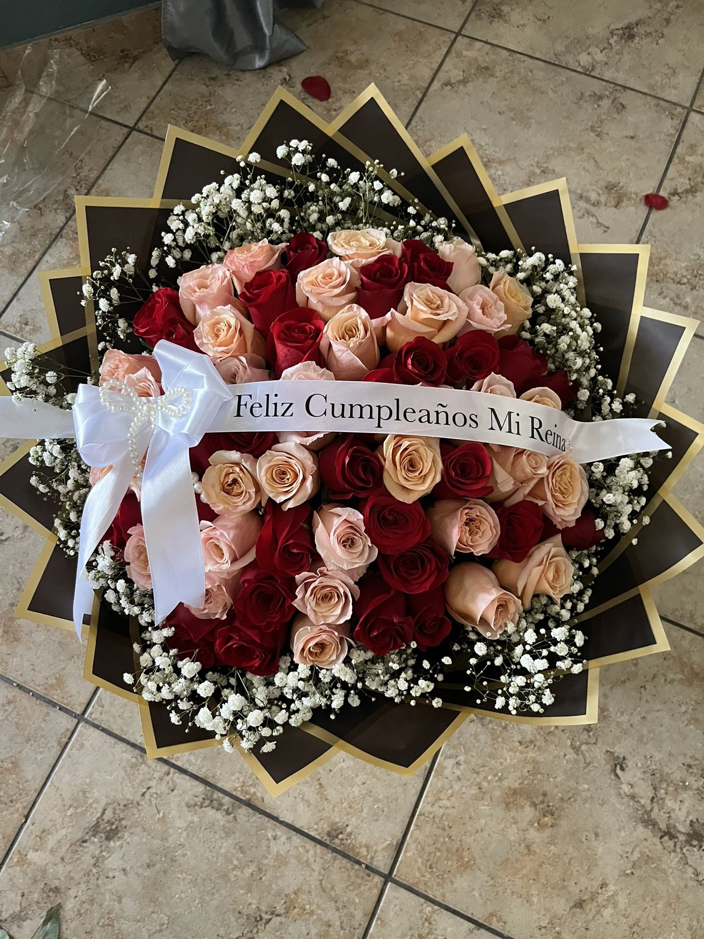 Natural roses, the roses you want to put in the bouquet and the accessories you want to add, with 3 days in advance.