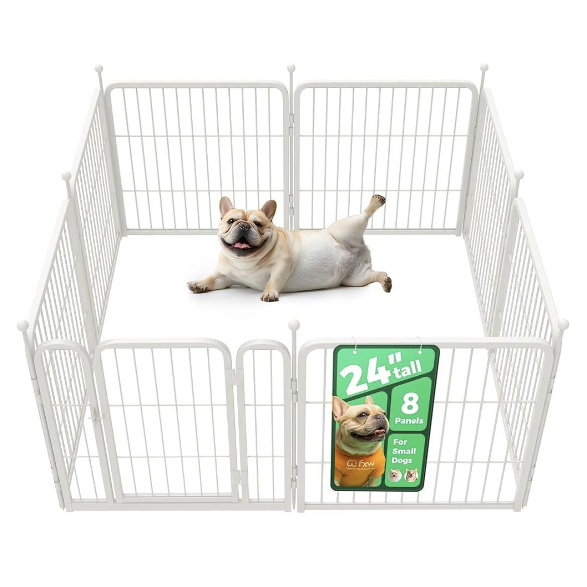 Dog Playpen for Indoor, Yard, RV Camping, 24 inch 8 Panels for Small and Puppy Dogs, White│Patented