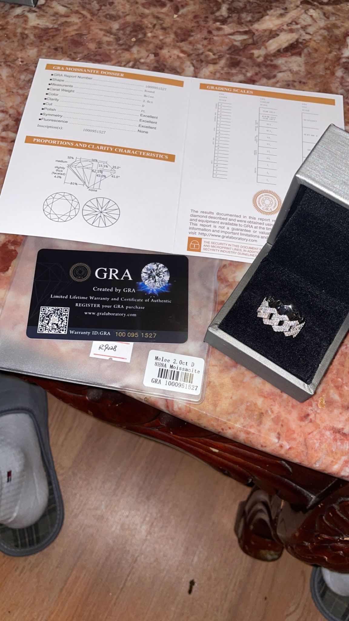 Brand new real certified moissanite stones with 925 Sterling silver hand crafted from the factory not plated or filled. Watch sounds all have been hand set by jeweler in India not like those Chinese factory watches everyone else is selling .this is SOLID silver underneath so even if you scratch it and plating comes off you won’t be able to see because silver underneath!!Will never turn your neck green or tarnish . Higest quality jewelry available the moissanite shine and hit hard moissanite is the new wave of jewelry at affordable prices . Super ICY you have to see to believe it to see it. The ring is size 9 and is 2ct and Everything does come with certification for the stones and box for the item. The ring is on sale 100 firm instead of 160 60off low ballers and low offer people will be blocked so don’t waste my time. Watch does pass diamond tester and I can show you in person . (NOT DIAMONDS THERE REAL MOISSANITE STONES SO DONT GET IT MIXED UP ) CASH ONLY NO REFUNDS NO EXCHANGES NO TRADES PICK UP ONLY