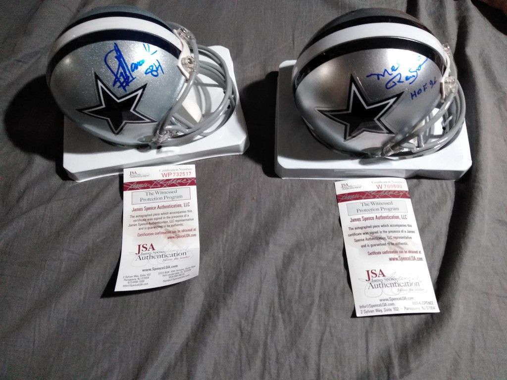 Signed by 2 great players on the Cowboys. Jay Novacek #84 and Mel Renfro #20 HOF 96. They do come in the enclosed cases the helments came in. Having to sell my collection your gain my loss. Pickup in Denton/Lewisville