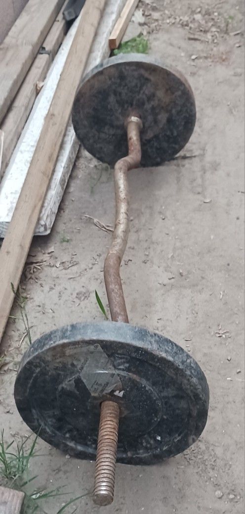Weight Bench with preacher curl n leg curl 2 curling bars Olympic Bench bar 2 50 s 2 25s 7 10s and 2 5s