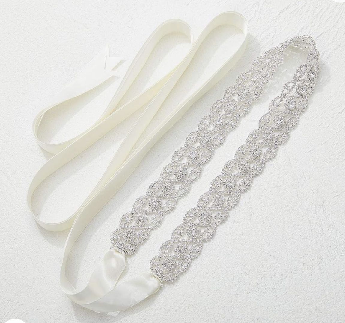 I bought this for my wedding and ended up not using. It has been stored in the original box and is like new. Pictures are from website ♥ This beautiful rhinestone belt is a piece of jewelry for your dress, glimmering with countless facets on soft satin ribbon ♥ Total Belt: approx. 86.61x0.78 inches; Rhinestone Adornment: 18.5x0.98 inches (L*W) ♥ Extra-long jeweled embellishment will make you sparkle from front to back; Color: Silver + Ivory Ribbon ♥ Self-tie back for easy adjustment. Graceful design for your wedding gown. If the ribbon is longer for you, you can shorten the length by yourself