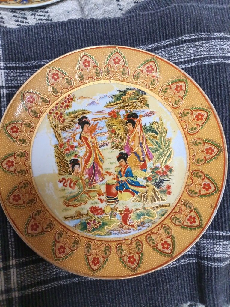 Japanese satsuma plates 25$ each or both for $40 and Japanese silk painting $ 35