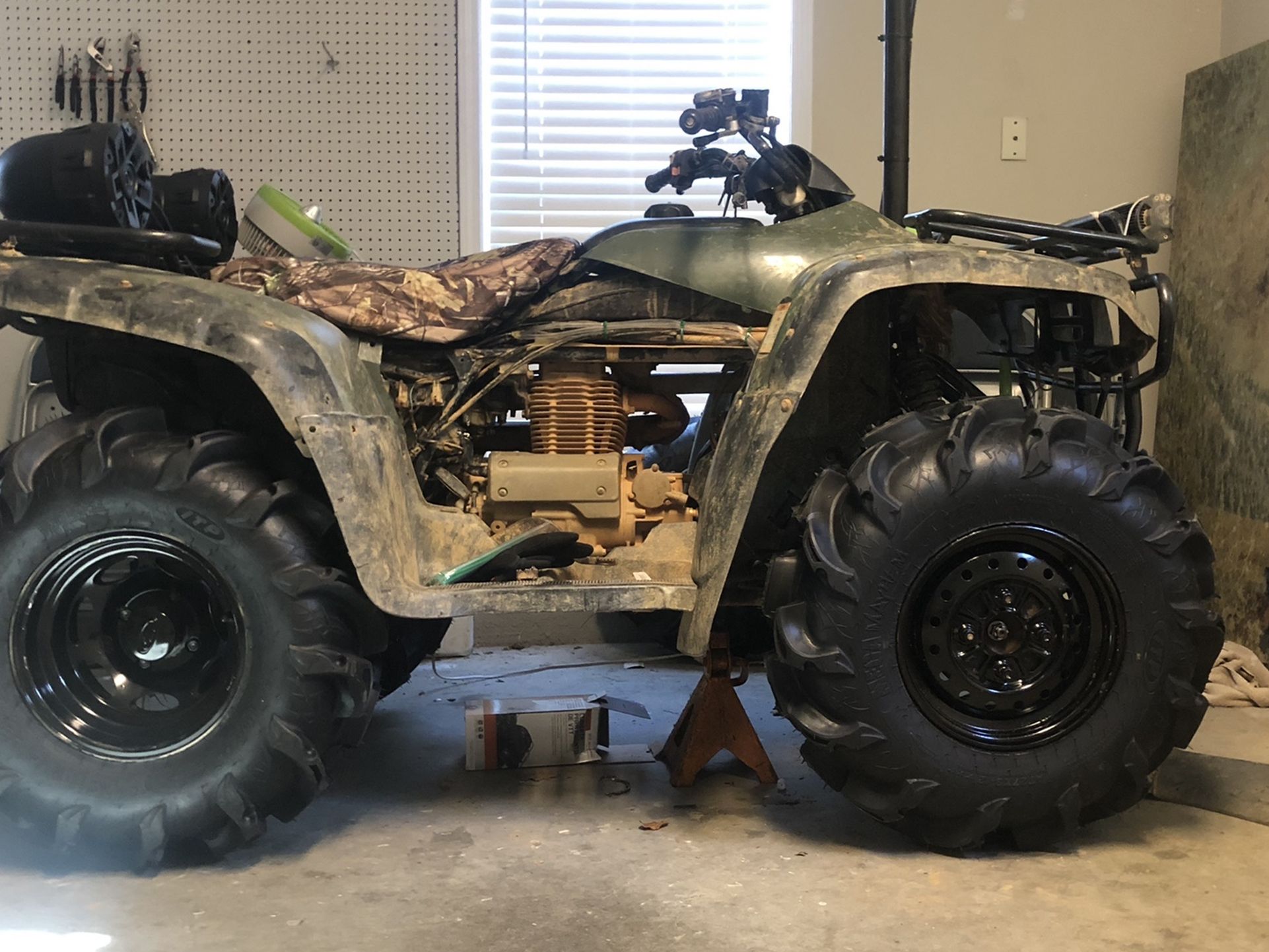 2002 Honda rancher snorked with 27 mega Mayham brand new tires with speaker willing to trade