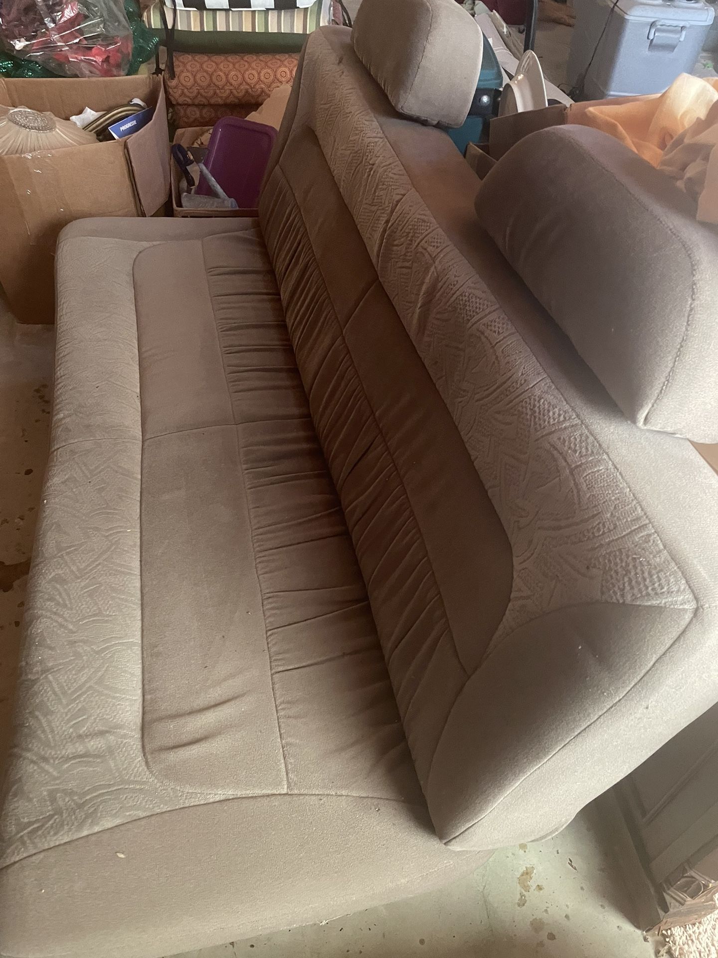 gmc safari bench seat like new make offer Never used stored in garage. Took out of van to fit wheelchair. It is pleated doesn’t show good In picture. Looks like it has marks on seat but it doesn’t they are pleats in fabric.