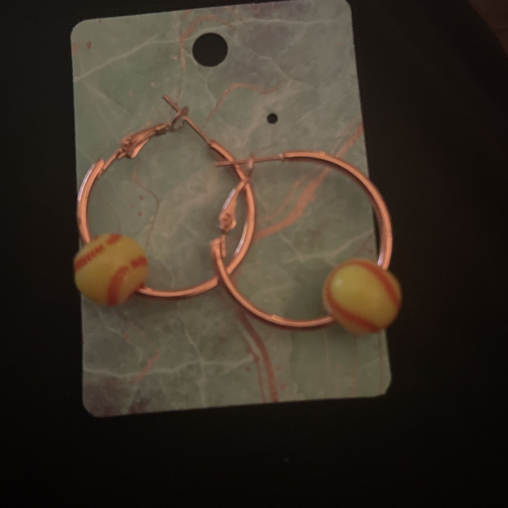 Small hoop earrings that have softballs on them