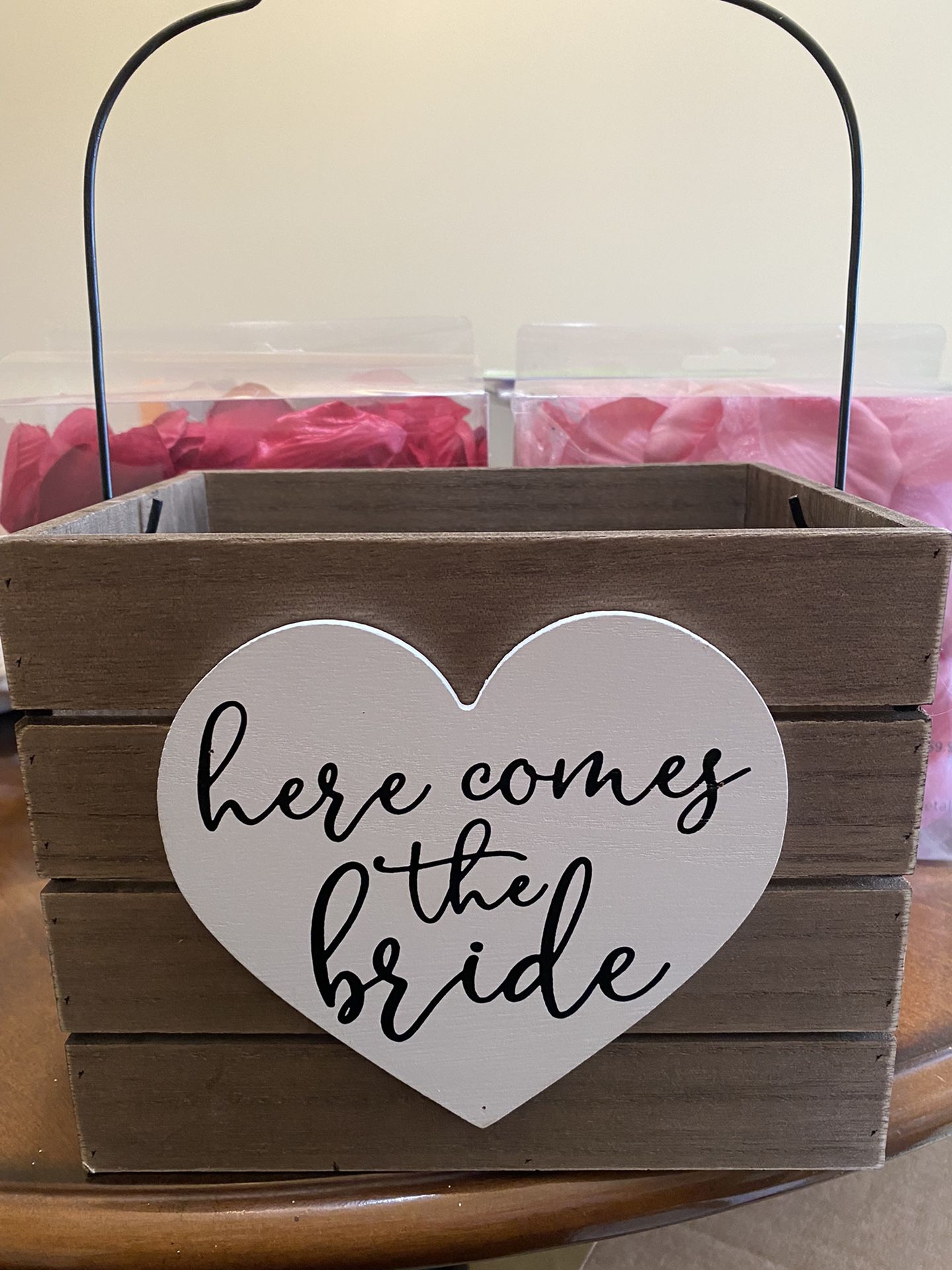 Flower Girl Box With Handle And Fake Rose Petals
