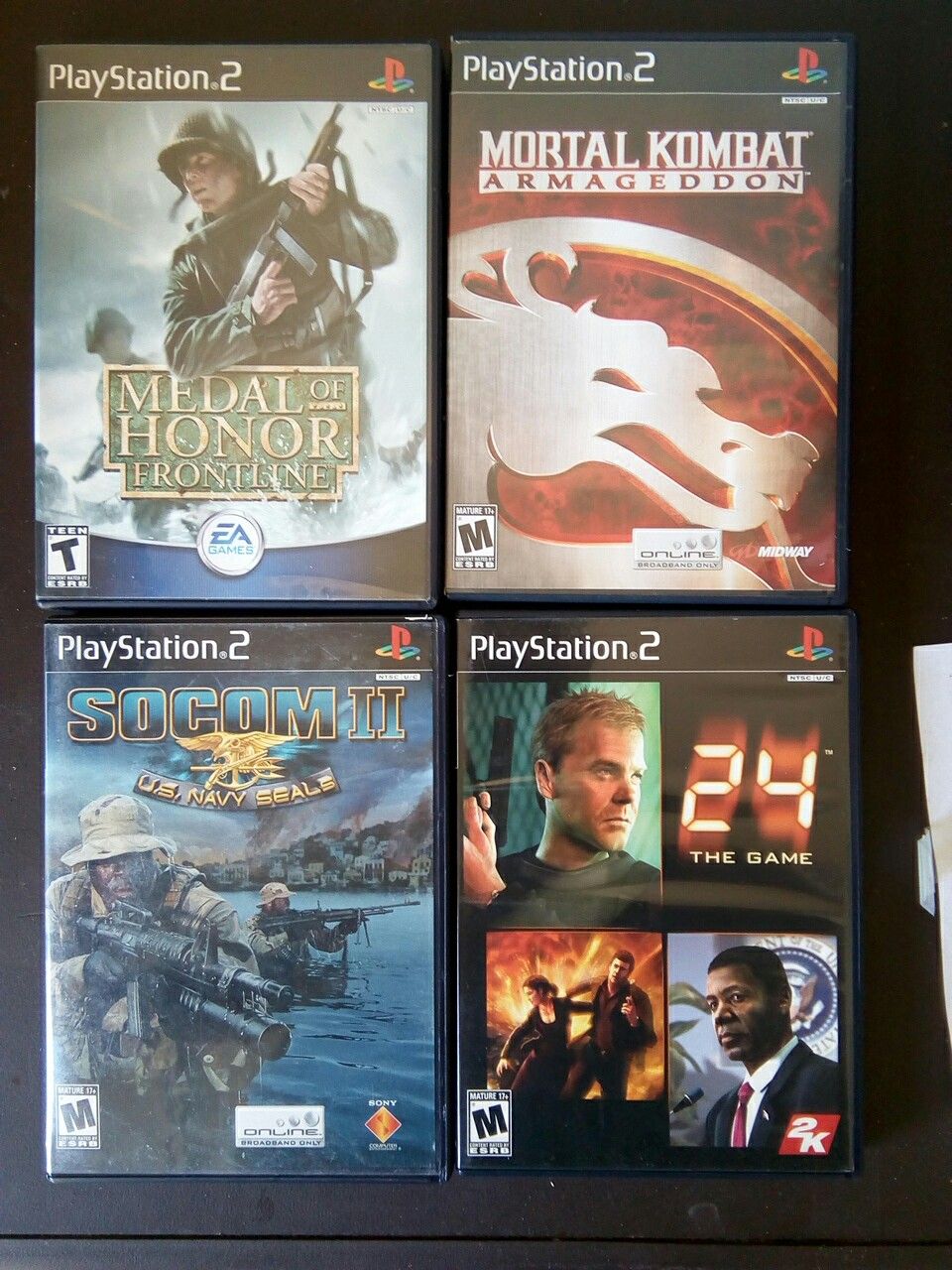 All games kept in great shape. Each game is $10.00 each Mortal Kombat Armageddon HAS SOLD. Medal of Honor Frontline-STILL AVAILABLE Socom II: U.S. Navy Seals- STILL AVAILABLE 24 The Game- STILL AVAILABLE