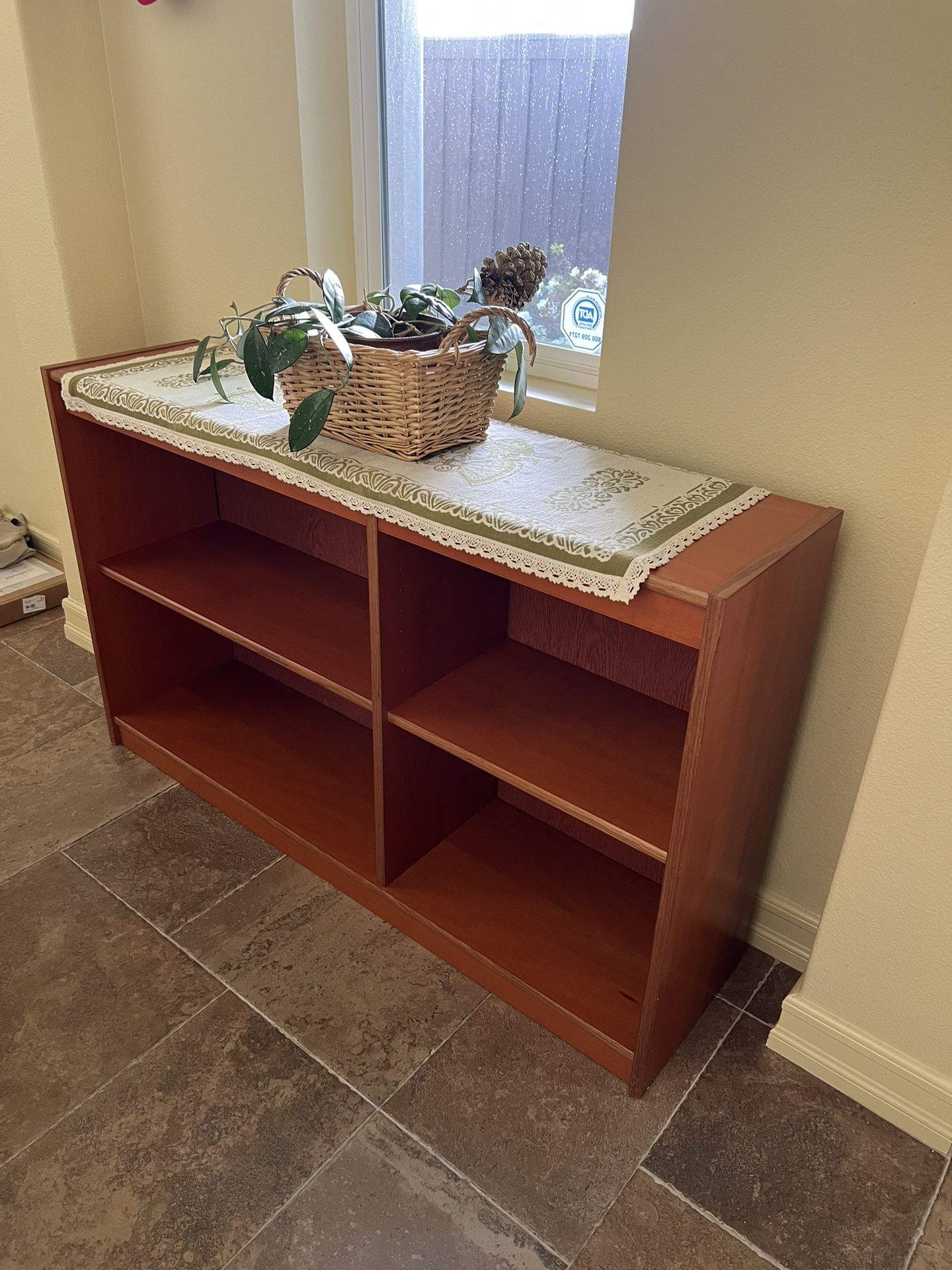 Use it for whatever! Books, shoes, kids toys Fully adjustable. Slight scratch as you can see in one of the pics 48 inches wide (4 feet) 30 inches high 12 inches depth