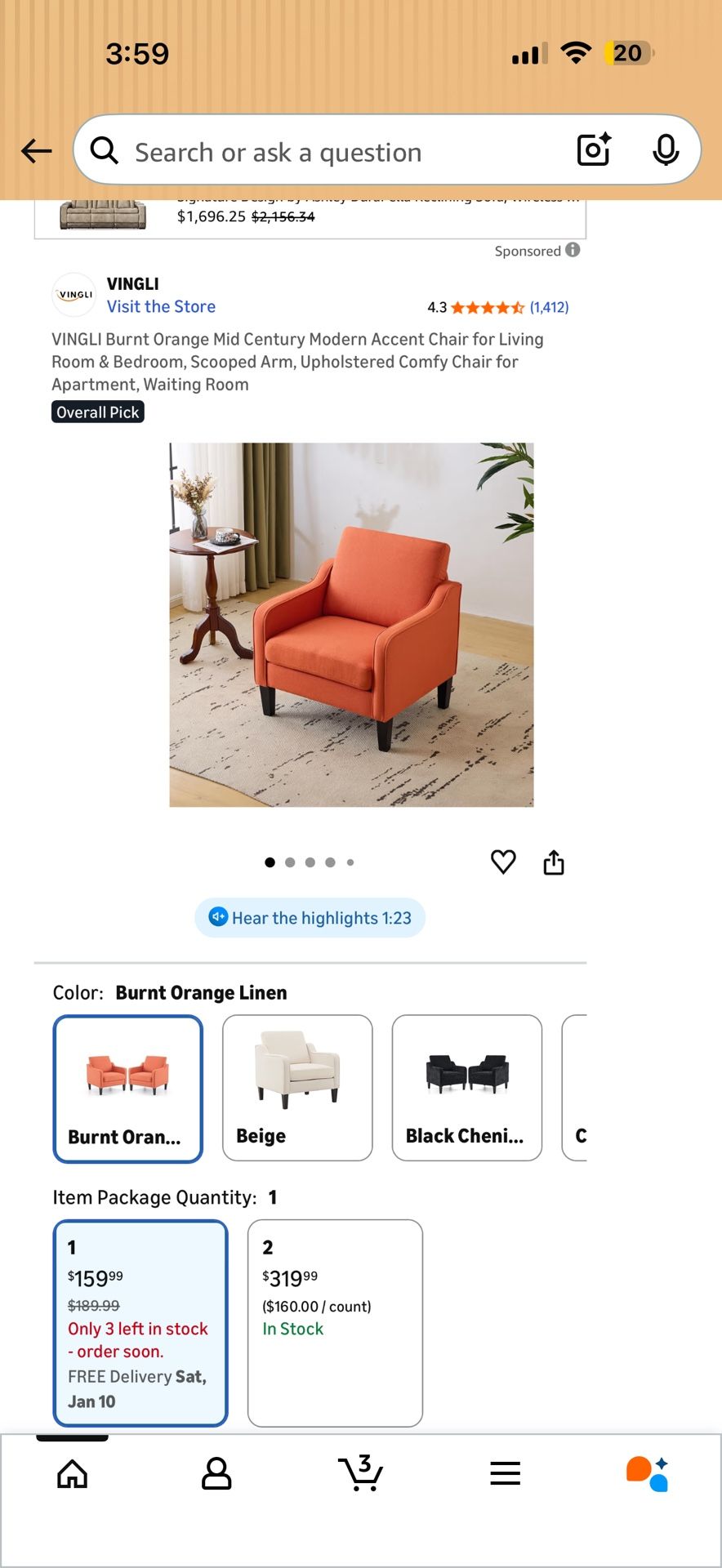 Burnt orange mid century modern accent chair. Brand new complete $80