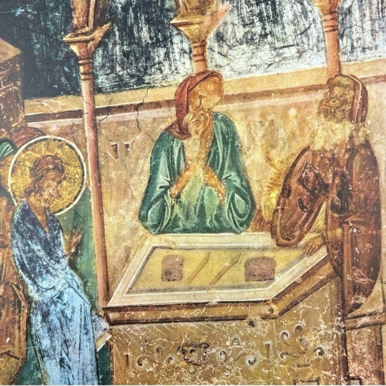 Original Vintage Fine Art Print Poster Medieval Bulgaria Wall Painting Antique Artist Collectible Printed Italy 1960’s Ivanovo. Christ before High Pri