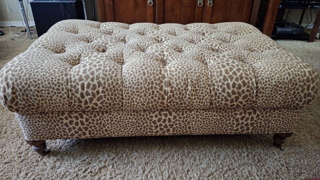Lee Industries Handmade Ottoman With Turned Wooden Legs and Casters. 48"L × 32"W 16"H New in store sells for $2400.