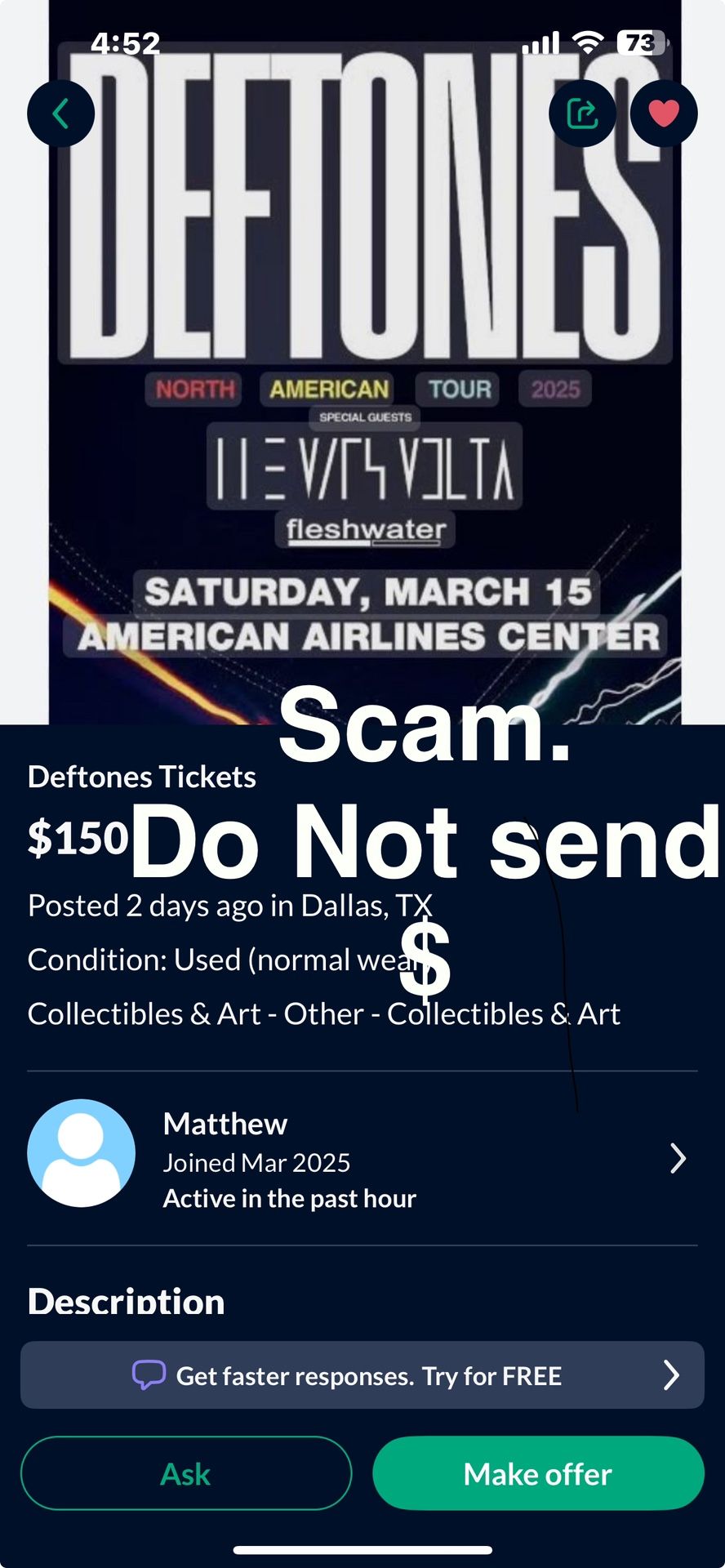Do not buy from Matthew. From LA. For $150 posting It’s a scam. 610 area code if the ask for apply pay or Zelle Also another posting with the same pic. I wouldn’t send $ to that one also.