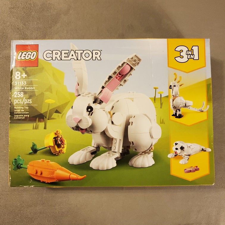 Brand new LEGO 31133 Creator 3 in1 Set White Rabbit 258 pieces. Builds Bunny, Seal and Parrot. Box has some wear from moving and storage Asking-$20.00 Must pick up near military and Roosevelt or at traders village on the weekends