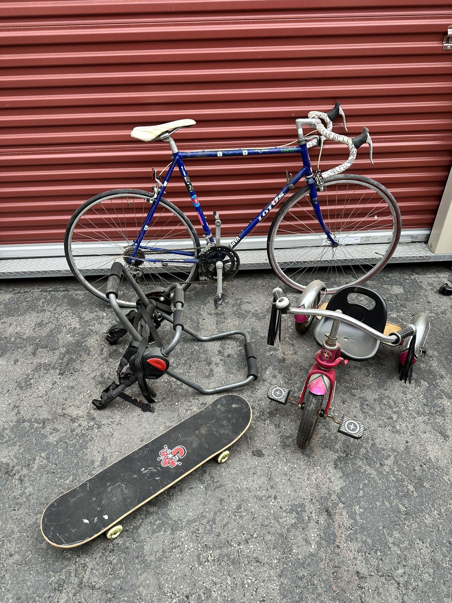 Bike Skate Board And Tricycle And Bike Rack