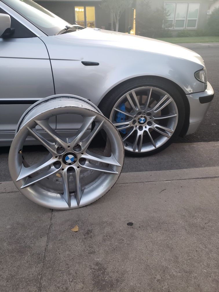 Selling my M series 18 inch BMW rims. Rims are staggered rear is bigger then the front. No bent rim here just scuffed.