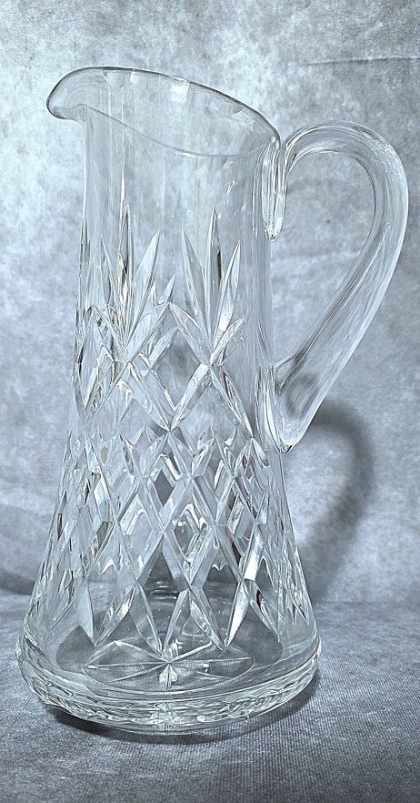 No chips, cracks. Very good condition. This vintage Lausitzer Crystal pitcher is a stunning addition to any glassware collection. The 10-inch height and 38-ounce capacity make it a perfect choice for serving beverages at home or in a professional setting. The glossy finish and etched cut glass design add a touch of elegance to any table setting. The pitcher is made of high-quality glass and crystal materials, ensuring durability and longevity. The clear color and German Democratic Republic origin make it a unique and valuable piece for collectors. This vintage original pitcher is perfect for those who appreciate the production style of cut glass and are looking for a exquisite serving vessel. Crystal glass pitcher with diamond cut pattern by Lausitzer Vintage Large CUT GLASS Water Jug Barware PITCHER