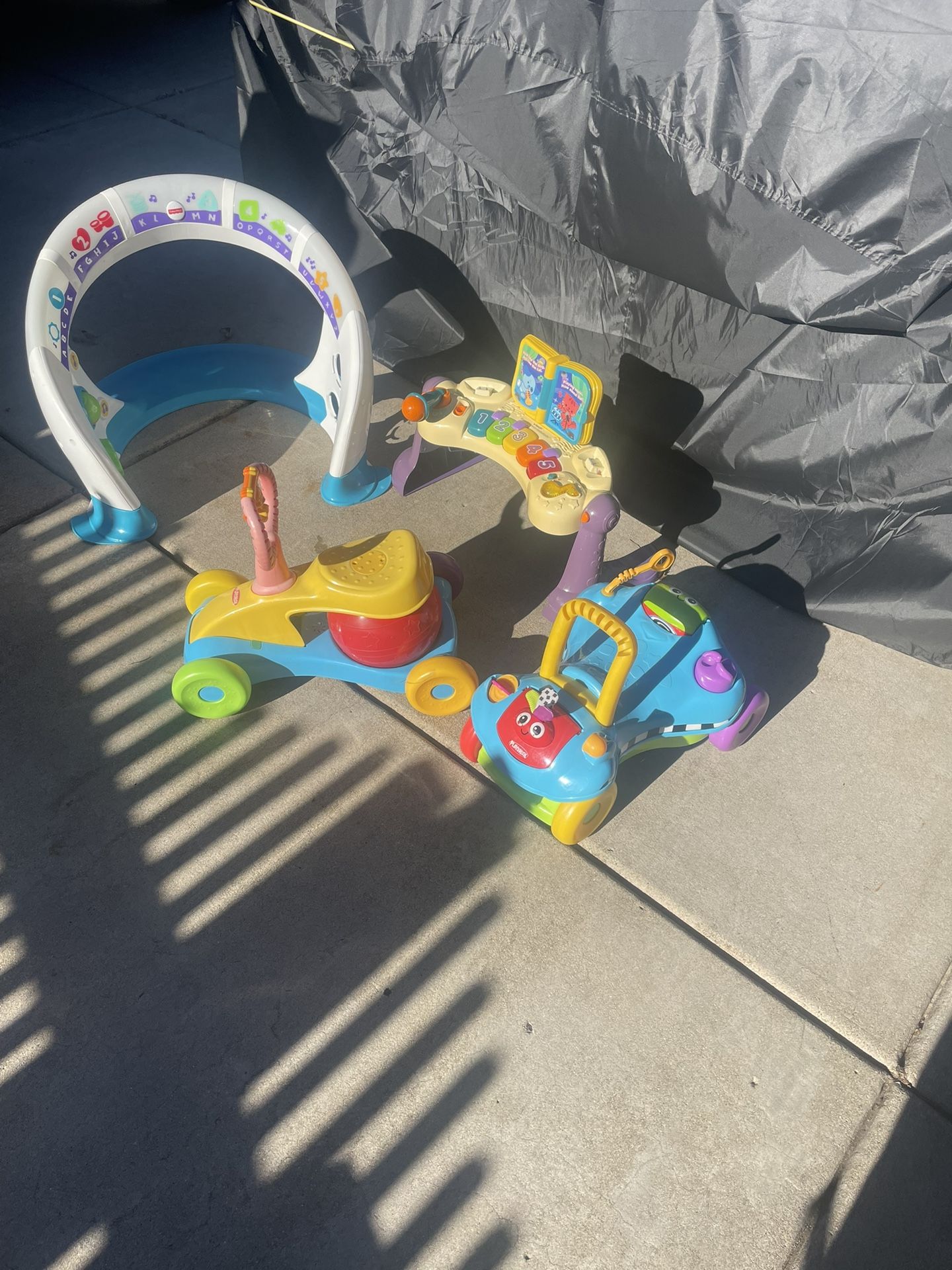 2 ride on. Piano has batteries. The dance ring does not have batteries in it. Taking $15 for all or $5 each