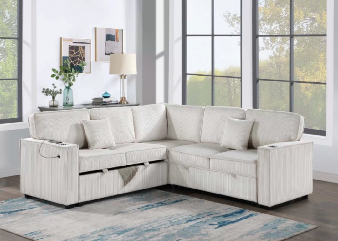 Gorgeous! Ivory sectional sofa with Pull-out bed & storage