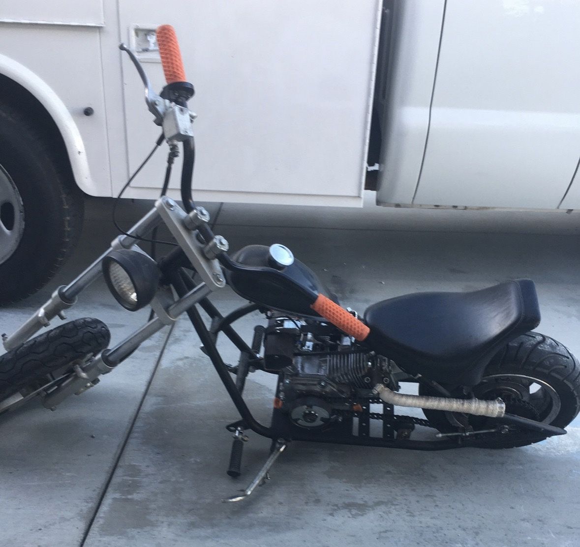 For sale: mini chopper bike with 212cc Predator engine from Harbor Freight. Has been in storage for a few years, so it may not pull start/ run but did when I parked it. If you’re mechanically inclined I’m sure you could get it running. The brand new engine input in it has less than 10 hours. Looking for serious buyers only. If it’s listed: IT IS STILL AVAILABLE. No delivery options available. Local pickup only.