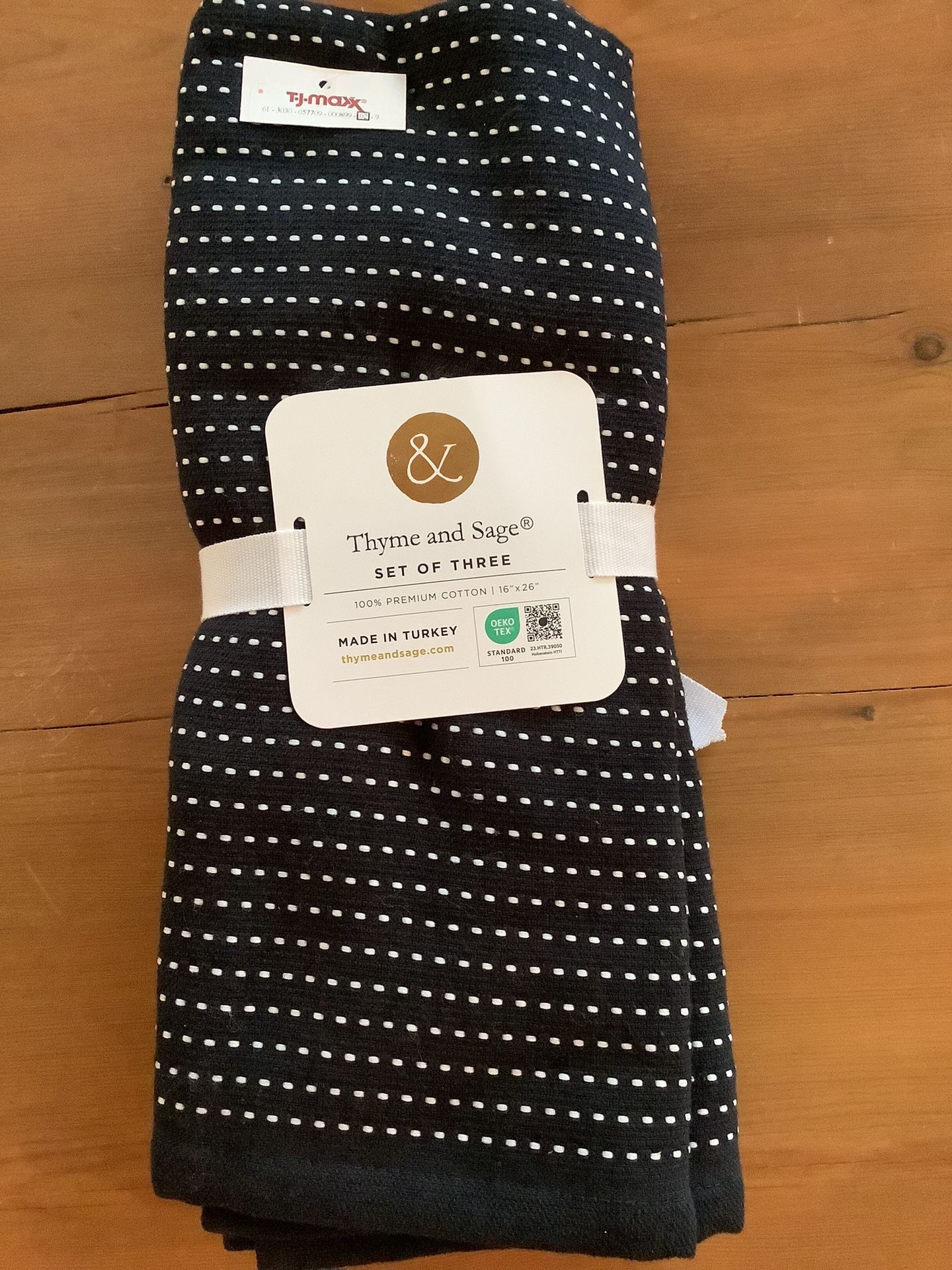 SET OF THREE COTTON KITCHEN TOWELS, THYME and SAGE 16” x 26”. MADE IN TURKEY