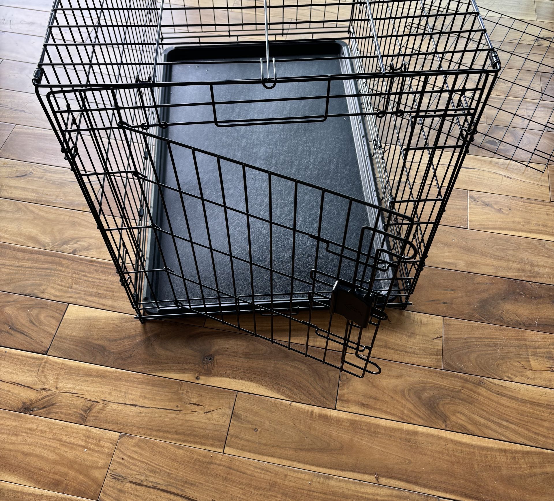 36" Dog Crate / Kennel – Large - Like New Folding metal dog crate in excellent, "almost new" condition. It was used only once and has been thoroughly cleaned and in storage. This is the perfect size for medium to large dogs (approx. 40–65lbs) or for a growing puppy thanks to the included divider. Approximate Measurements: 36" L x 22" W x 24" H Condition: Like new, used only once and has been in storage. Removable leak-proof plastic tray and metal divider panel Portability: Folds flat in seconds for easy storage or travel Features secure slide-bolt latches. Typically $50 Brand New (more with tax