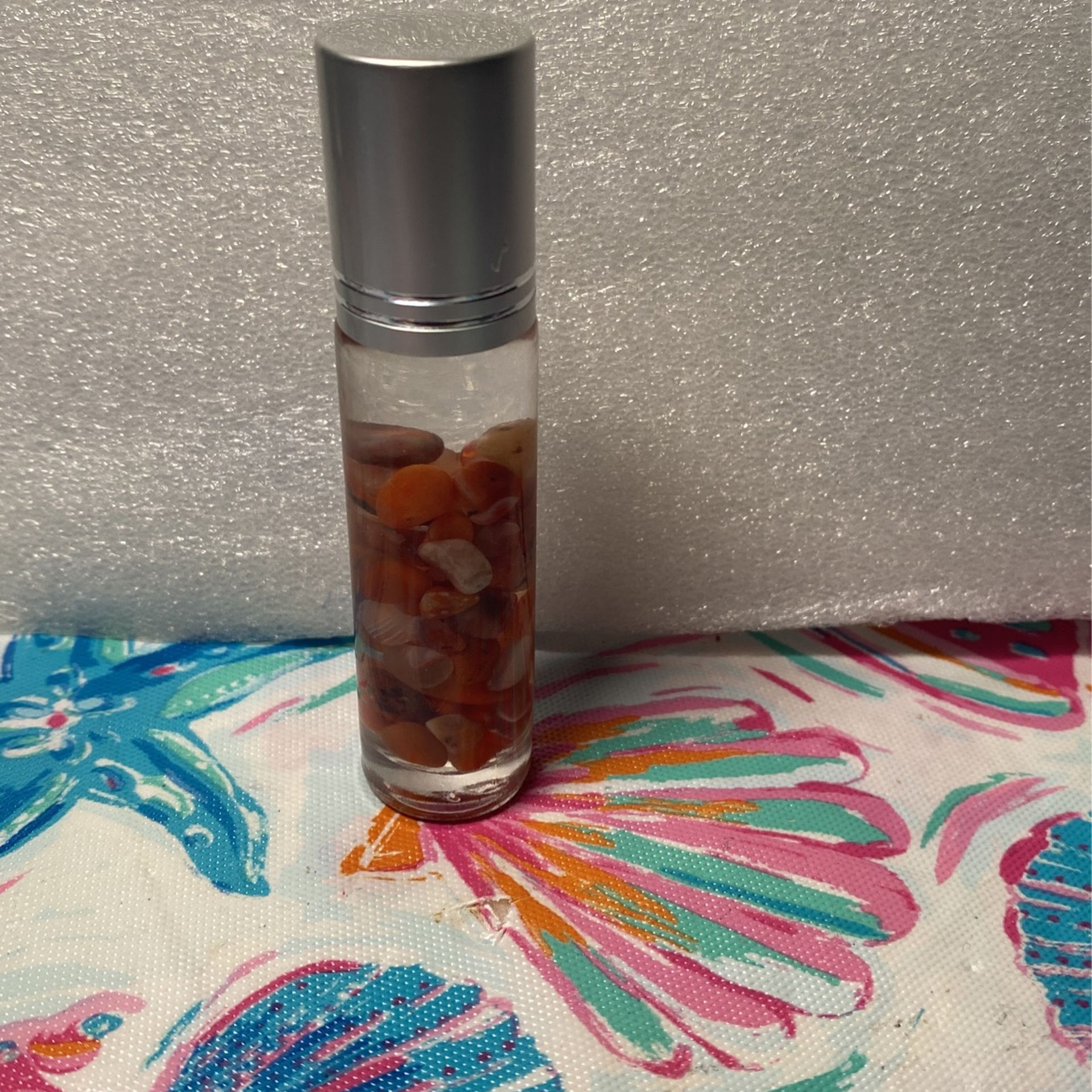 Essential Oil Roller (sage, spearmint, and grapefruit) Carnelian chips on the inside of the roller. Packaged with care :)