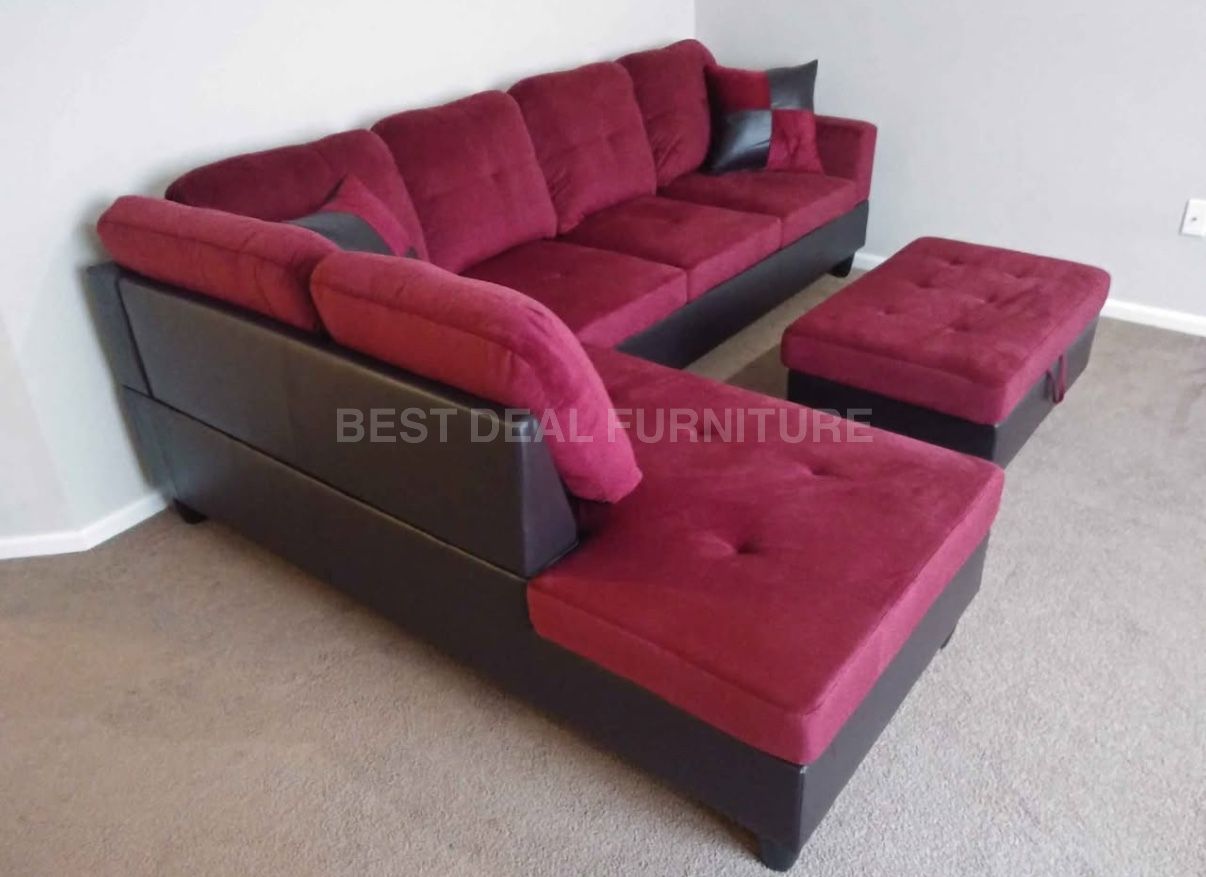 • Brand new in factory box Includes: sectional + pillows + storage ottoman • Left-facing or Right-facing chaise available • Delivery available — same/next-day • Pay on delivery • Payment Plan Available