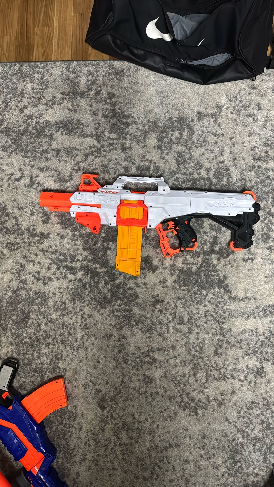 Cash only (sorry). Selling this NERF ULTRA SELECT. Motorized, automatic (hold down trigger for continuous fire). Comes with batteries. No cosmetic damage, comes with 2 ten round magazines, swaps between both; fires, cycles, and swaps between mags great. A bit on the harder side in terms of shooting power, but still great fun for kids, young teens, or as a Christmas present. Note: Comes with 20 darts, all tested and working with this gun. However, one magazine has mixed darts and there may be some cosmetic damage on all the darts, but they still work great nonetheless.