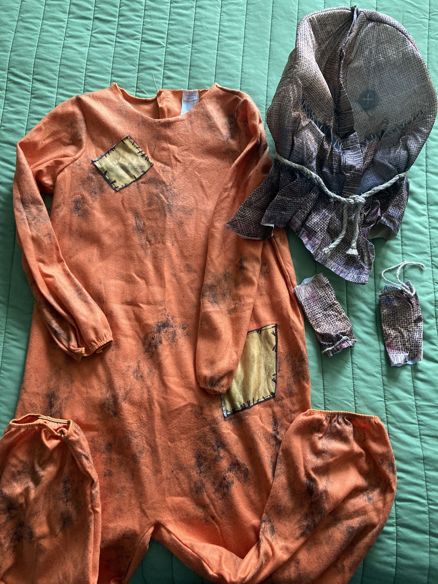 Creepy Halloween costume ‘Sam.’ Includes jumpsuit, gloves, & mask. Size Large 10/12.