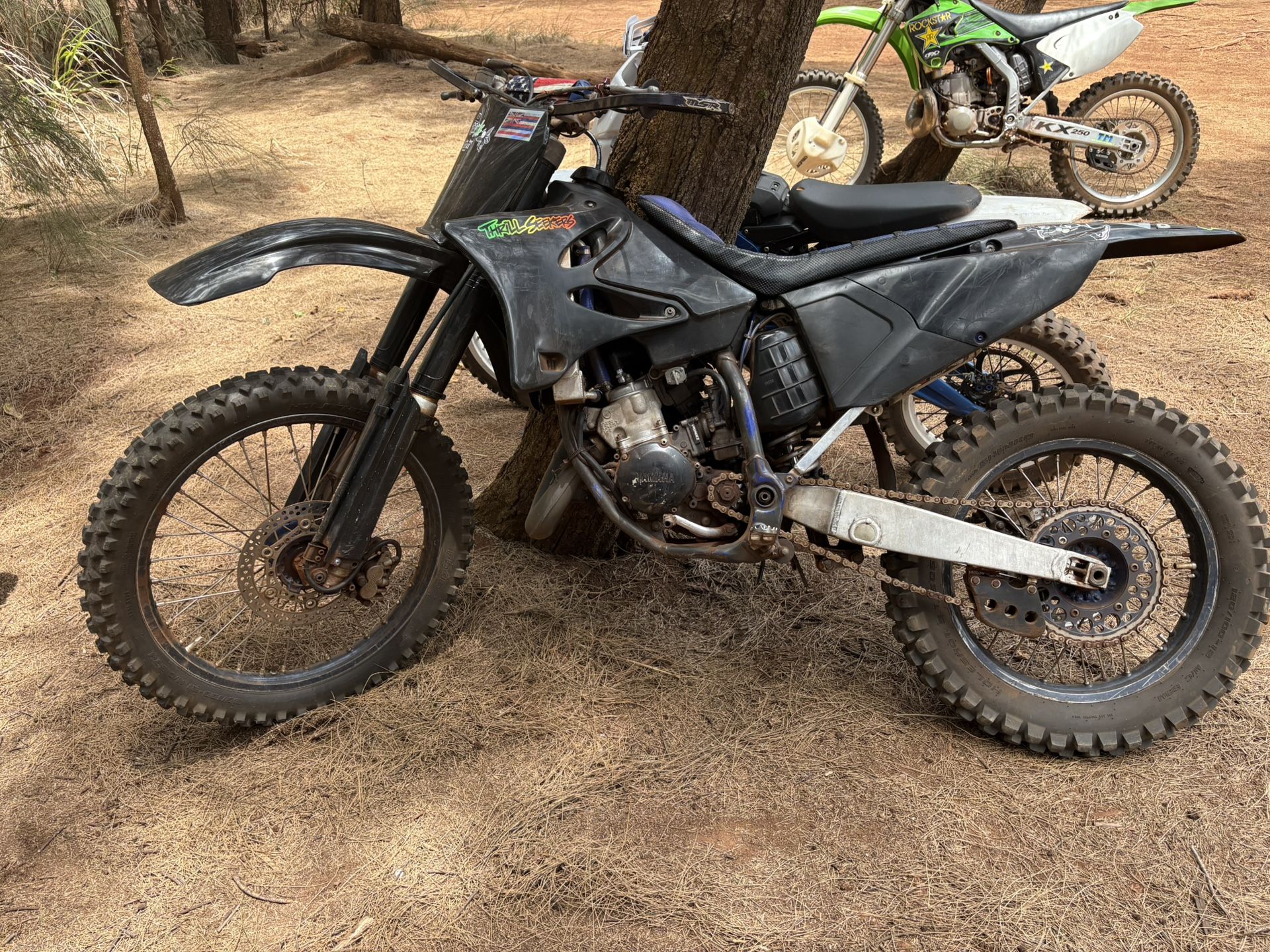 04 yz125. bike just got a brand new top and bottom end new oil new filter carb cleaned brand new front tire tube bike been riding cherreh ever since rebuild, she trail/street ready. if you do wanna ride street i suggest changing rear sprocket. oil change every 5-6 rides